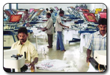 The print house has two divisions, chest printing and table printing, the total capacity for table printing is 50,000 Kgs/month. The types of printing done here are pigment, reactive and discharge. The chest printing division is equipped with 12 head and 8 head printing machine this machines can print 12 colours and 8 colours simultaneously. Curing and fusing facilities are also available. The total capacity for chest printing is 3,00,000 pcs/month.