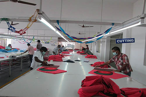 We have well trained personal in our cutting and sewing department with latest imported machines. We have 25,000 sq. ft. facility for production (cutting, sewing and finishing)..