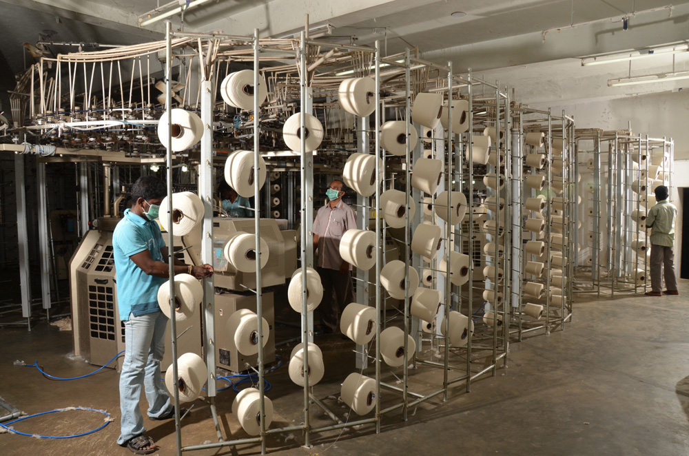 This CIRCULAR KNITTING unit is tied up with TEXSHANN to meet our entire needs of cloth manufacturing. It is equipped with knitting machines from Singapore; in addition we have got COLLAR & CUFF making machine from China.