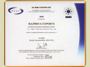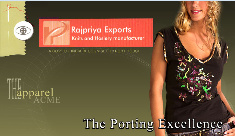 RAJPRIYA EXPORTS - the entirely - export - oriented organization, entered in fabrication of ready - to - wear knit garments, 15 years ago, blossoming into it's heyday today. Initially as job contractors to other leading export houses, with great nicety of experience.