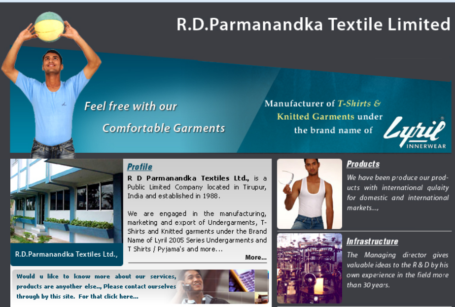 Lyril 2005 Series Undergarments & T-shirts are very good market in all over India. Our products are being distributed by 15,000 Distributors and Dealers throughout India.